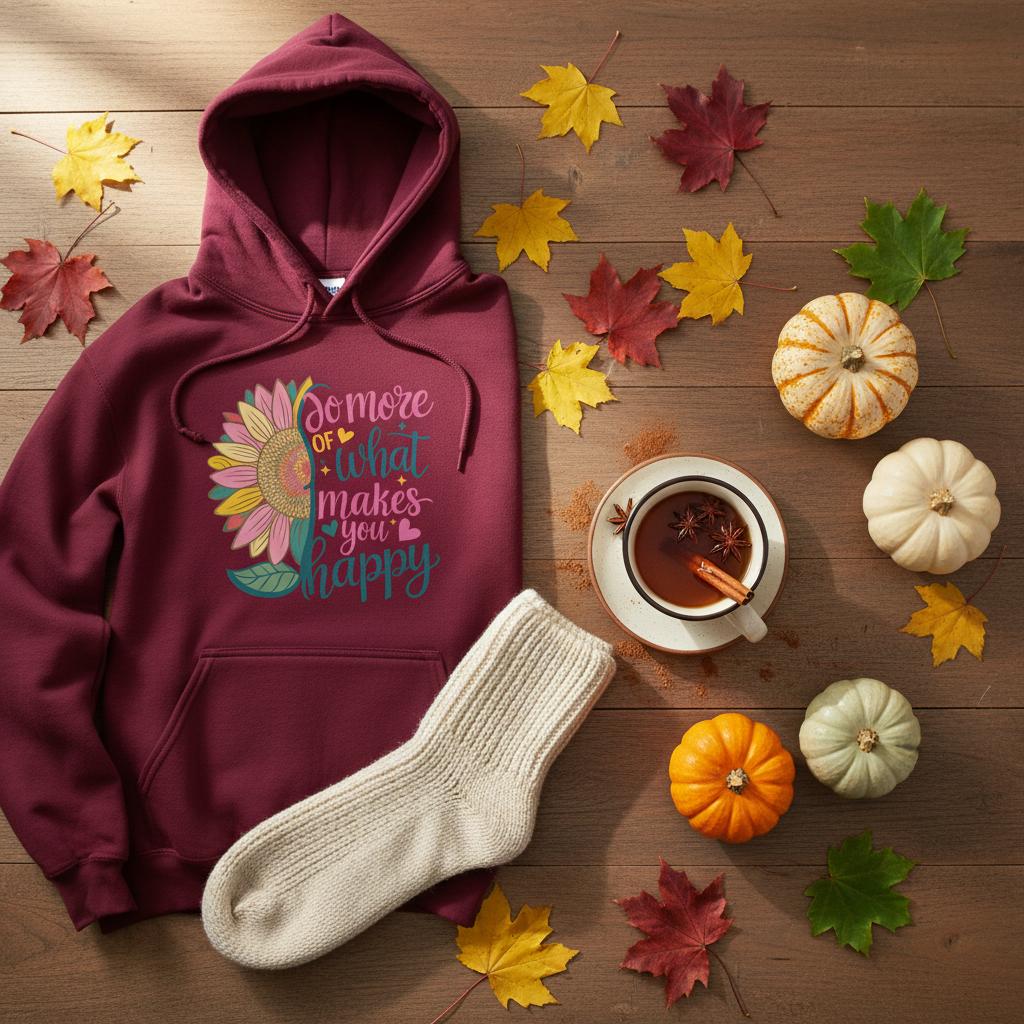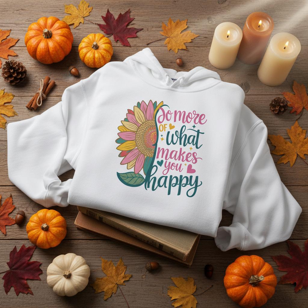Embrace positivity and inspire those around you with our Positive Vibes Hoodie, featuring the uplifting message "Do More of What Makes You Happy." This hoodie is not just a stylish addition to your wardrobe; it's a statement that encourages a joyful lifestyle.