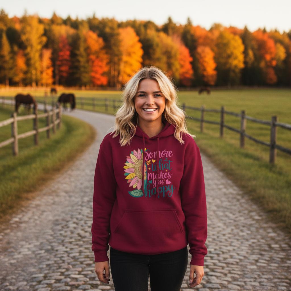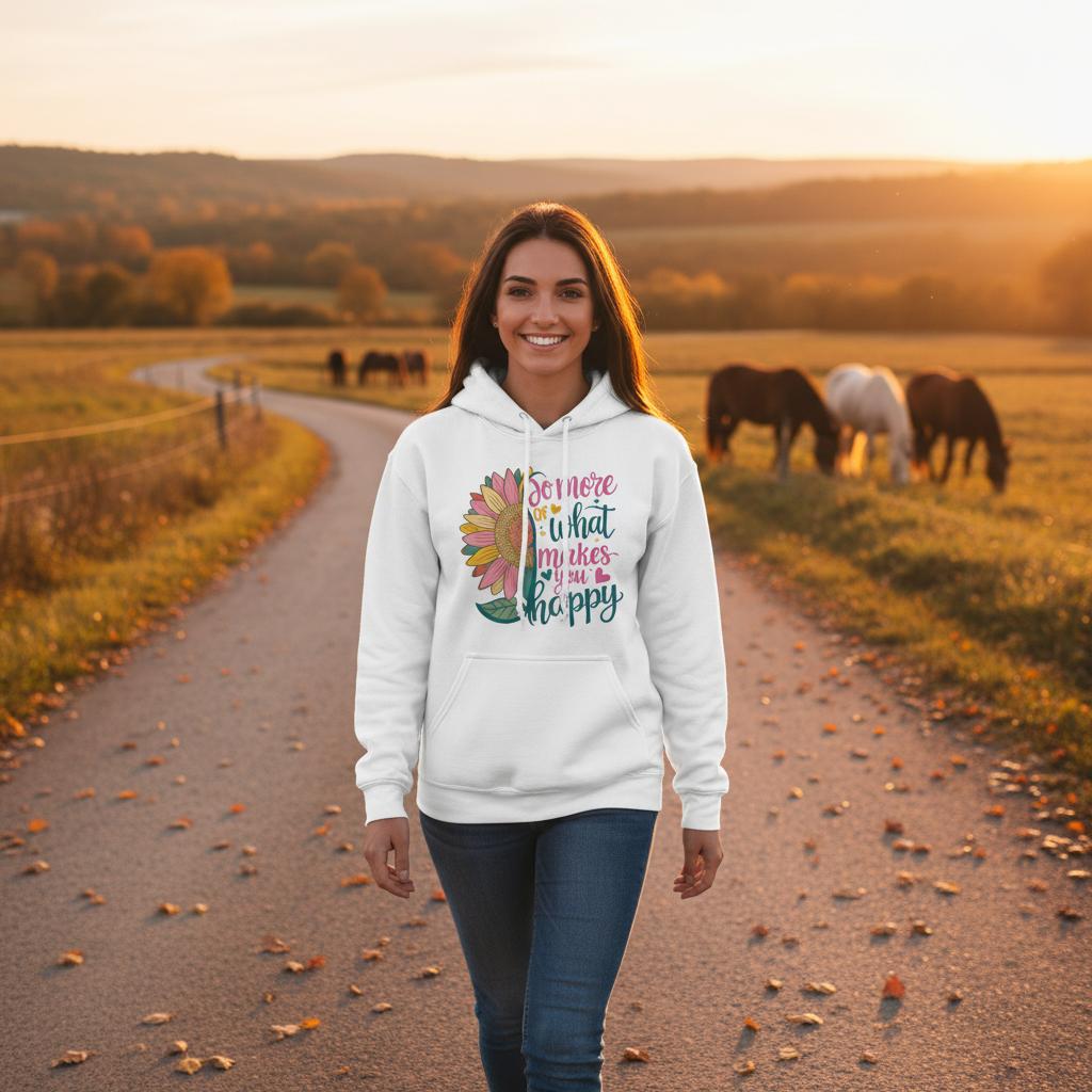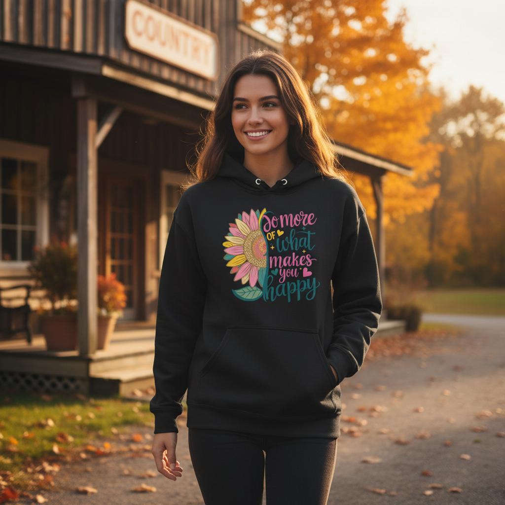Whether you're lounging at home, heading to the gym, or out with friends, this hoodie serves as a reminder to prioritize your happiness. Order now to spread joy and good vibes wherever you go!