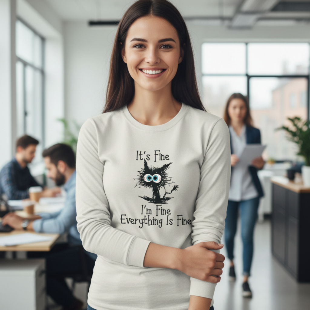 Brighten your wardrobe with our Classic Shocked Cat Graphic T-Shirt 🐱—a blend of humor and comfort that aligns with our mission to bring joy and laughter into your everyday life. Emblazoned with 'It's Fine, I'm Fine, Everything is Fine,' it's an instant mood lifter and conversation starter.