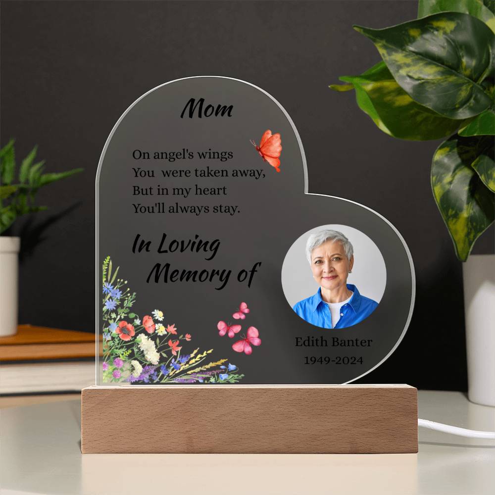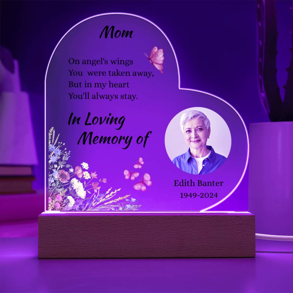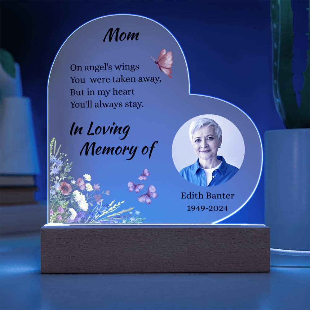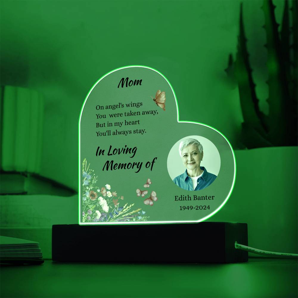 This beautiful acrylic lighted heart plaque will be a remembrance of your precious loved on for all time!