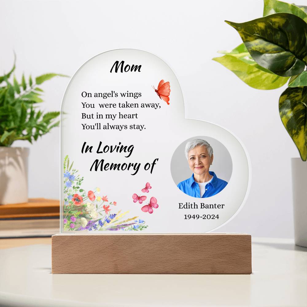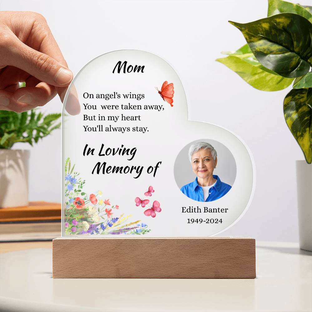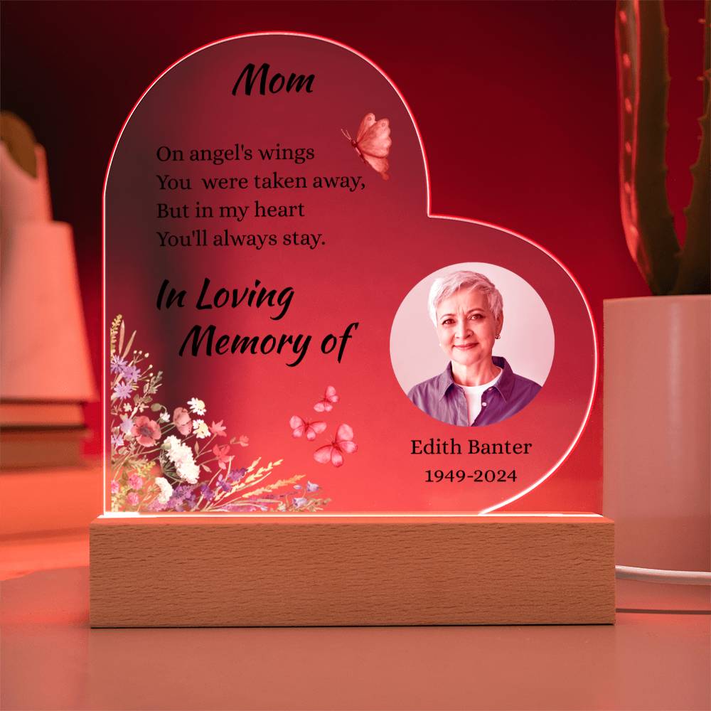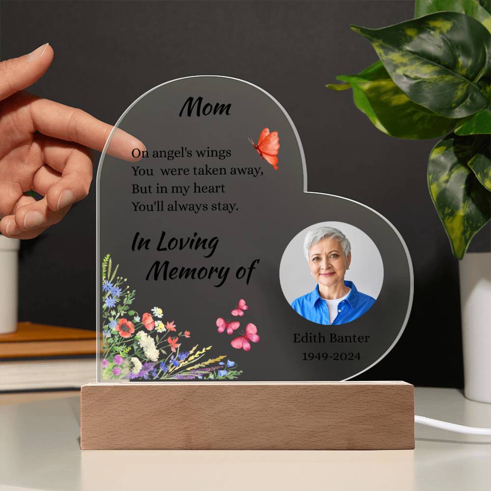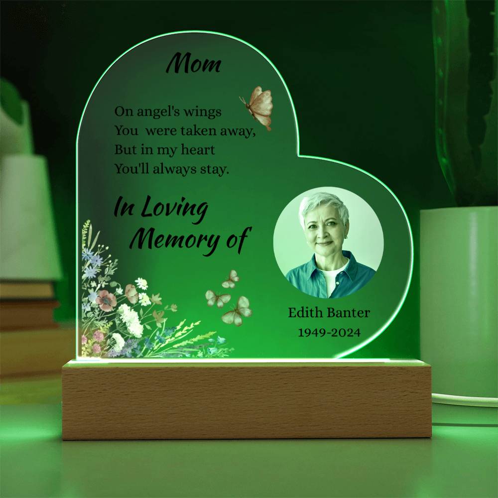 This beautiful acrylic lighted heart plaque will be a remembrance of your precious loved on for all time!