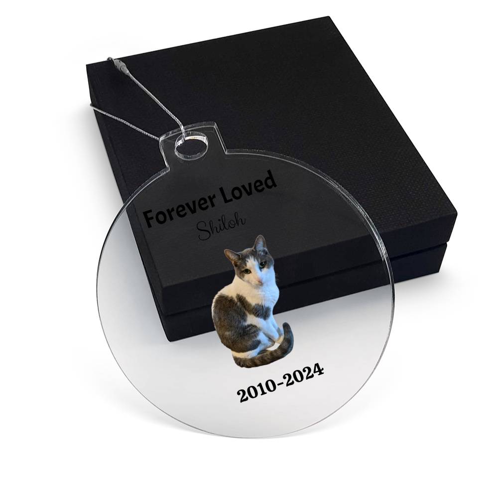 Transform cherished memories into a stunning keepsake with our Personalized Acrylic Ornament Plaque. Simply upload your pet's photo, add their name and years, and we'll create a beautiful tribute that celebrates the unconditional love they brought to your life. 💕