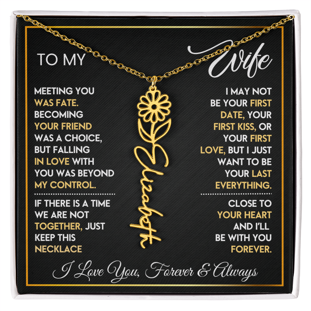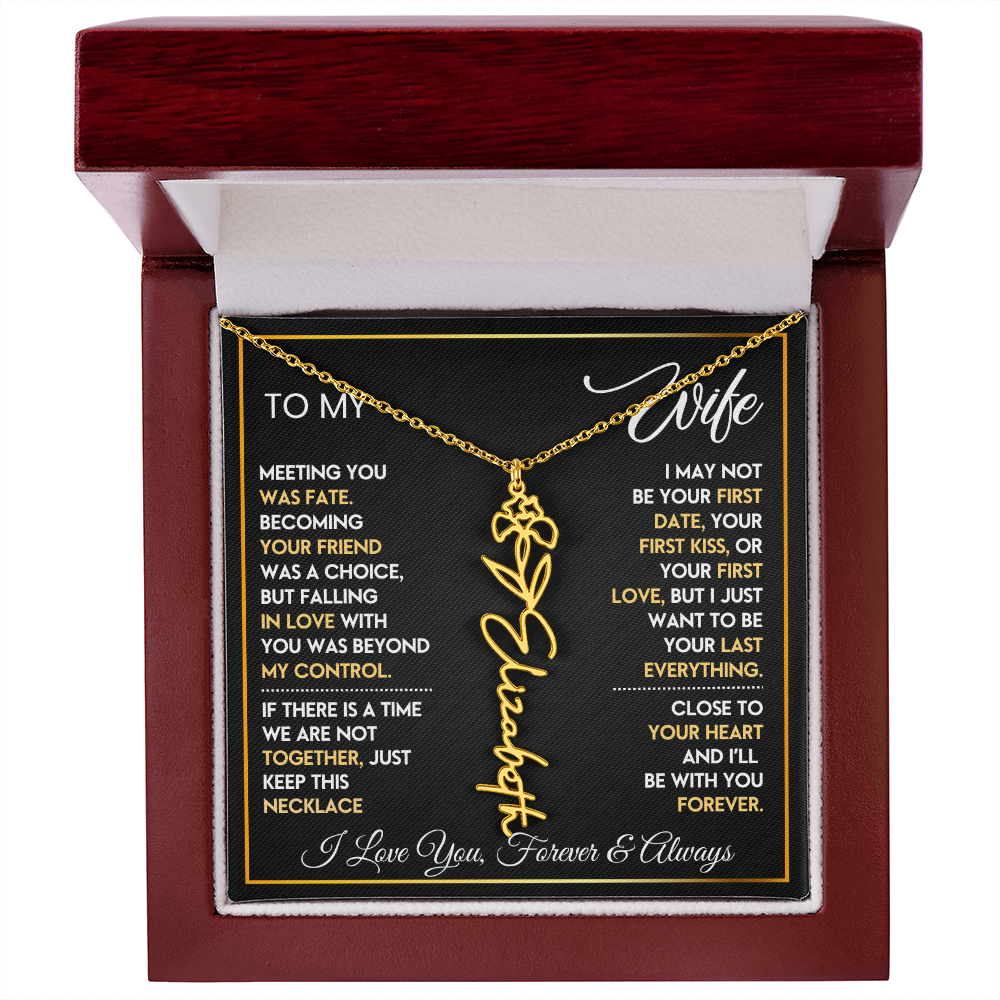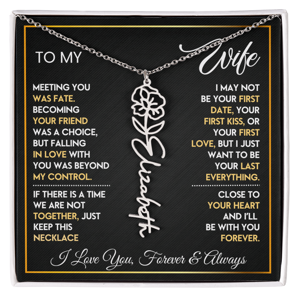 This **Personalized Flower Name Necklace** is more than jewelry — it’s a daily reminder that she is cherished beyond words. Custom-designed with her name and beautiful birth flower, this elegant piece turns your love story into something she can hold close to her heart. ✨